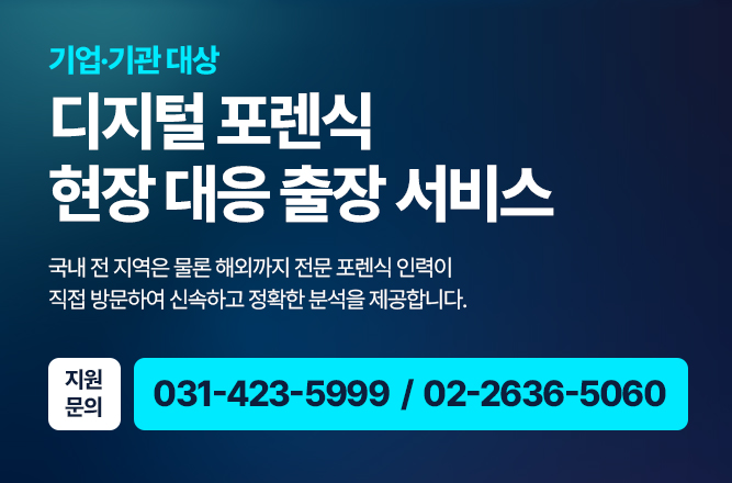 - 포렌식을 원하는 기기의 종류, 사용 행태, 상황, 손상도(기기 파손 시), 용량 등에 따라 비용 변동이 있습니다.